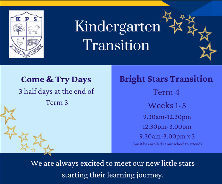 For those precious little ones starting school for the first time we offer a Parent Information Session, Come and Try Days and 5 week Bright Stars Transition program. These events help you and your child feel prepared for starting school.